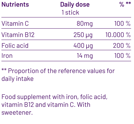 Die focus plus Sticks sind ein Nahrungsergänzungsmittel mit Eisen, Folsäure und Vitamin B12. Sie unterstützen in stressigen Lebensphasen dabei, Konzentrationsstörungen zu verringern und die Gedächtnisverbesserung unterstützen.