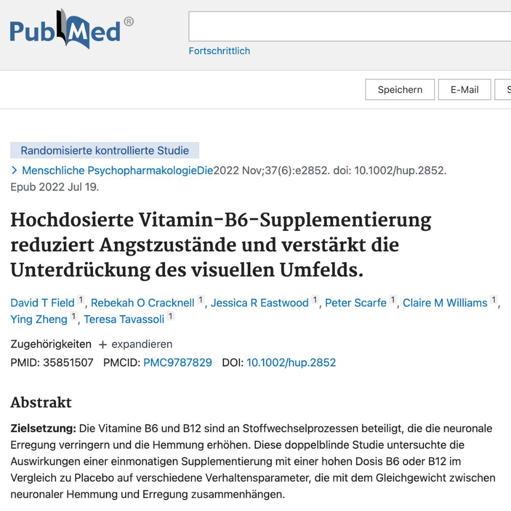 Bei Erwachsenen mit erhöhter Ängstlichkeit zeigte hochdosiertes Vitamin B6 eine Verringerung selbstberichteter Angstsymptome.