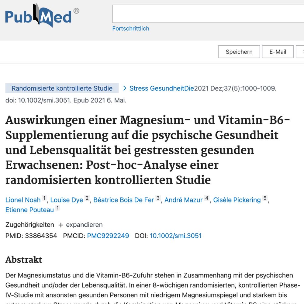 Bei stark gestressten Erwachsenen zeigte Magnesium, mit Vitamin B6 verstärkt, eine Reduktion des wahrgenommenen Stresslevels.